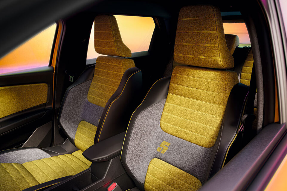 - サステナブルな素材感: デニム生地(リサイクル素材)を内装に多用。イエローやグリーンのアクセントカラーが、かつてのポップな時代を再現しています。