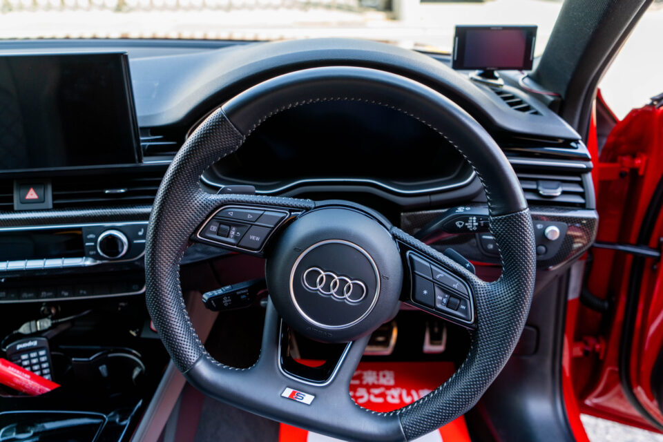 48Vマイルドハイブリッドを搭載した日本には未導入のモデルになります。歴代のS4には6気筒と8気筒のガソリンエンジンを搭載していましたが、今回、ご納車させていただいた新しいモデルのS4には336bhpの出力を発生させる3.0L V6ターボディーゼルが搭載されています。