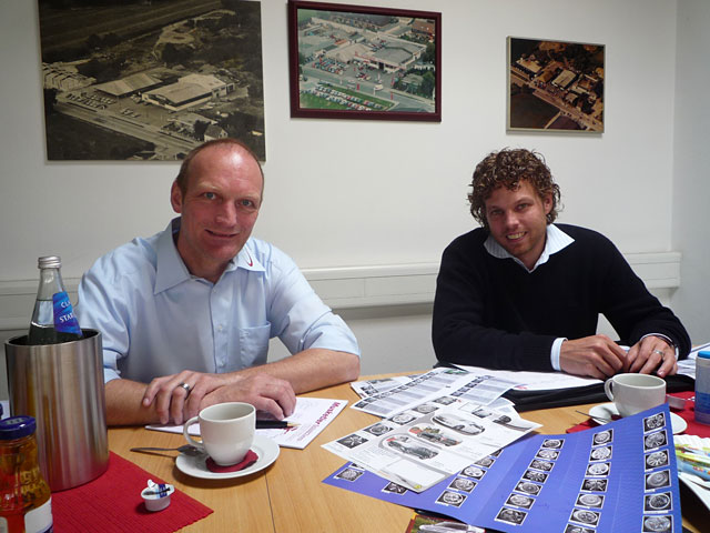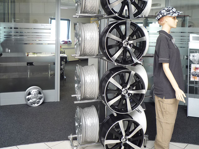 話の中心はC5IIIや2009年リリースの新型ホイール群。C5IIIはショールーム中央にフルコンプリートのデモカーが展示してあり、各パーツを丁寧に説明してくれます。C5III用で力を入れたのが、外から見えない部分のフィッティング。サイドスカートのドア側への散りまわし等は相当、気を使ったとのこと。確かにフィッティングレベルは高く、高級感が増しています。