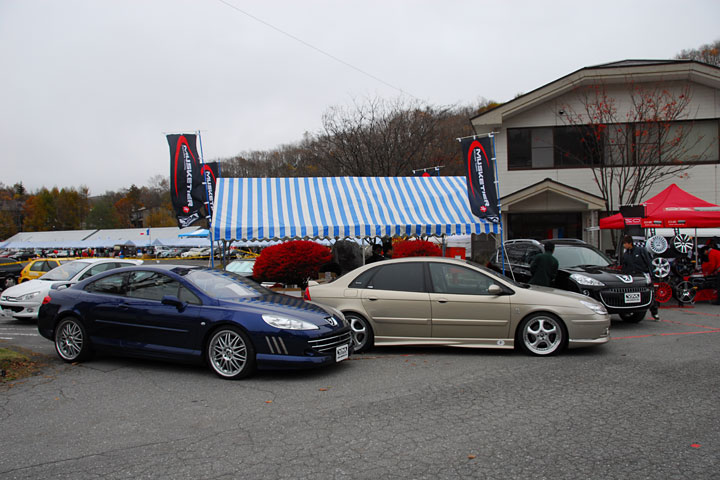 1台目は「YM SPORT Coupe407」。昨年の「MUSKETIER Coupe407」を大改修、各種エアロパーツのワンオフ製作とセンター出しサイレンサーを装着した新作です。イメージ的には従来の「Geist」製品の延長上にあると思っていただいて結構です。